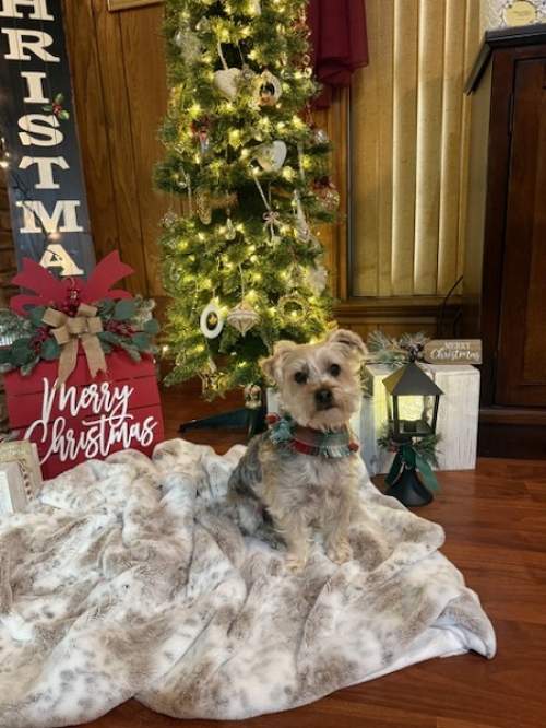 I love sleeping in bed with my humans, I eat with no problem, I’m friendly with all people I meet, I walk well on a harness and leash, I’m not barker, normal inside noises don’t rattle me, I take any medicine fine with a pill pocket and I’m not annoyingly clingy like most yorkies are. I’m not a jumper, so I will need assistance getting on and off the chair, sofa and bed. Foster mom says this is a good thing since I won’t tear an ACL jumping. Low key confession, I probably would jump if I wasn’t overweight. There, I said it. I’m husky, fat, vertically challenged, heavy!! I’m working on it though. I’m trying to eat less, although that’s hard, because I am a chow hound.