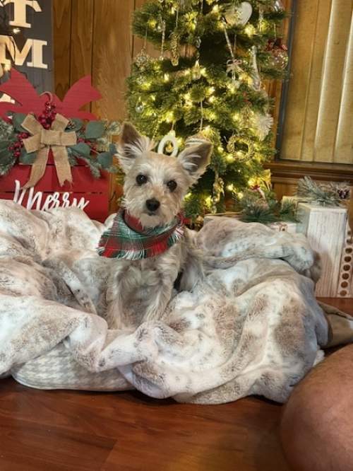 4/14/2024- Major Tom thought it was about time he updated everyone on what was going on with him since he has been in his foster home. He is a sweet boy, but does have fear issues with new people. When he first meets someone, he will bark at them as if he is scared and trying to protect himself. Sometimes he might even go hide if meeting someone new at his foster home where he is secure. But once introduced and comfortable, he will love unconditionally. He loves men and women, but definitely is more comfortable with women. In his foster home, he plays and loves on foster mom and dad, but will submissive tinkle if foster dad picks him up too quickly. He would benefit from a young playful dog in the home as he loves to play and can be aggravating to dogs that don't want to play or have his energy level. He loves to play with toys and run and play chase with other dogs. He is not very comfortable walking on a harness and leash, so a secure fenced yard is a must for him. He is a very good sleeping companion and adores laying right next to his humans either on top or under the covers. Major does well at the groomer and is great for his weekly bath and blow dry for his foster parents.