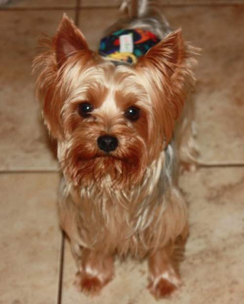 She would do great in a home with other dogs her size, but definitely NO CATS! She is quite the hunter outside chasing birds and squirrels and even stray cats if they happen to get into the yard. She is submissive, but don’t mistake that for a pushover. She is quite the mom when she needs to put another dog in line for something, but she doesn’t start anything. Even though she isn’t your typical looking yorkie, with her longer legs and her full tail, Emma is a very beautiful girl. She has the most angelic face and is just the sweetest baby. She is such a good girl and will use the pee pads when she needs to, but will also do her business on her many trips outside.