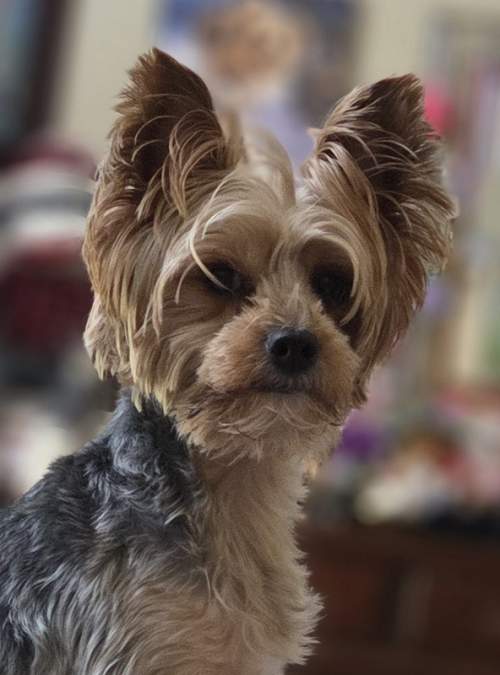 She would do great in a home with other dogs her size, but definitely NO CATS! She is quite the hunter outside chasing birds and squirrels and even stray cats if they happen to get into the yard. She is submissive, but don’t mistake that for a pushover. She is quite the mom when she needs to put another dog in line for something, but she doesn’t start anything. Even though she isn’t your typical looking yorkie, with her longer legs and her full tail, Emma is a very beautiful girl. She has the most angelic face and is just the sweetest baby. She is such a good girl and will use the pee pads when she needs to, but will also do her business on her many trips outside.
